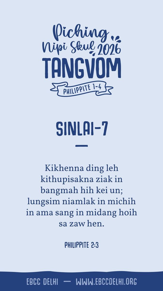 Kikhenna ding leh kithupisakna ziak in bangmah hih kei un; lungsim niamlak in michih in ama sang in midang hoih sa zaw hen (Philippite 2:3)